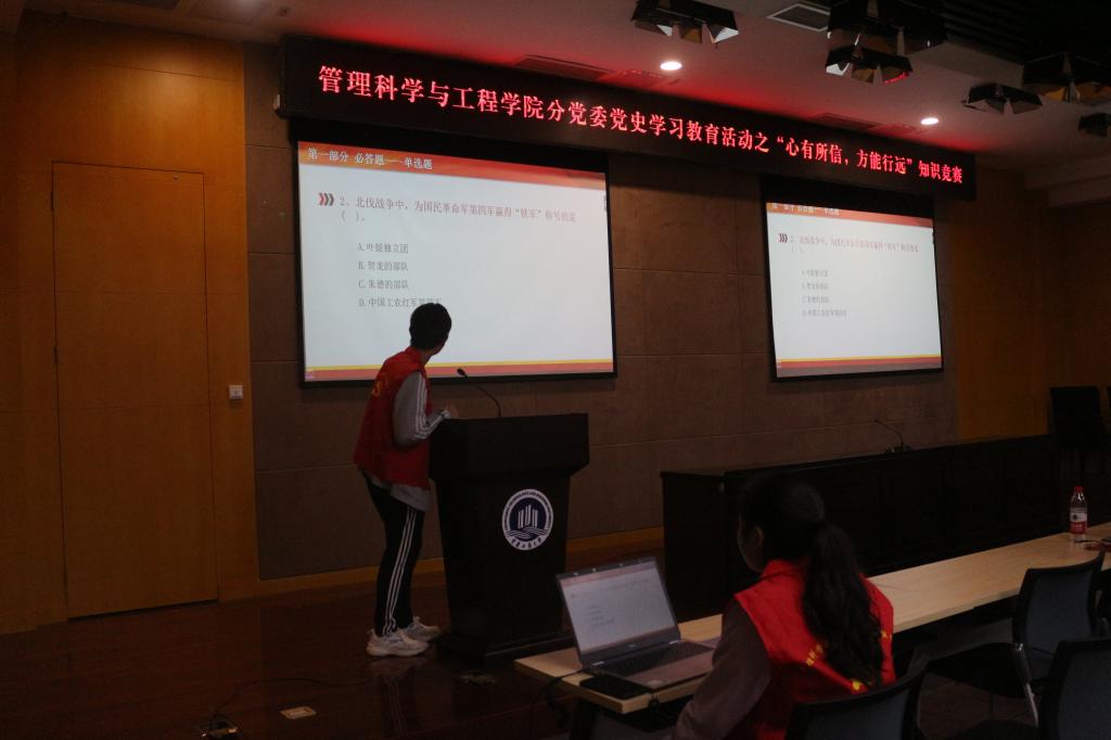 在培训课程后,管工学院入党积极分子还参加了学院党员服务站举办的党史知识竞赛。本次竞答活动集知识性、趣味性、互动性于一体,题目主要涵盖中国共产党百年奋斗历程、党的理论创新成果等,并将文字、图片、音频、视频等多种形式融入题目,创新丰富竞赛形式,让党史学习教育动起来、活起来。