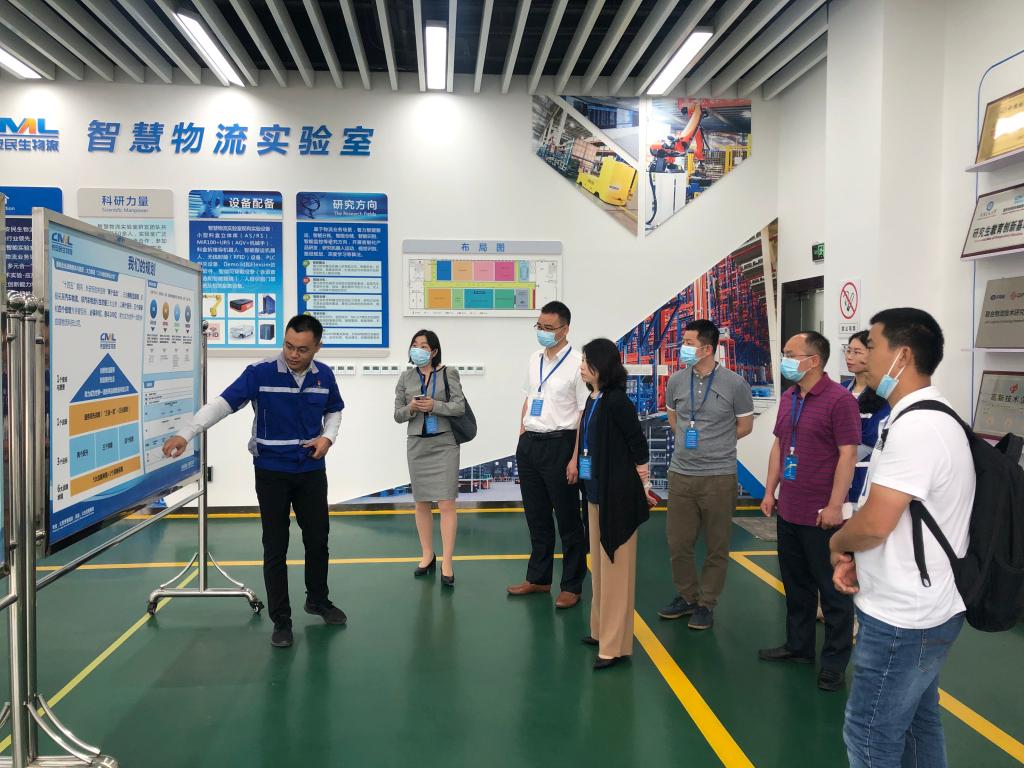 黄钟仪院长一行在企业智慧物流中心吴官洋经理的陪同下先后参观了智慧物流实验室、数字化信息大屏。长安民生智慧物流实验室以项目为载体,重点开展物流仿真、可穿戴技术、激光自然导航、智能拣选等新技术研究,目前拥有发明专利及实用新型专利共130余项,汽车物流行业领域排名前三。数字化信息大屏基于数据协同管理平台,是长安民生物流公司以客户导向、数据驱动、在线管理为理念打造的物流运营信息化在线管理平台,可实现安全监控、设备优化、在途车辆监控、物流信息挖掘等。