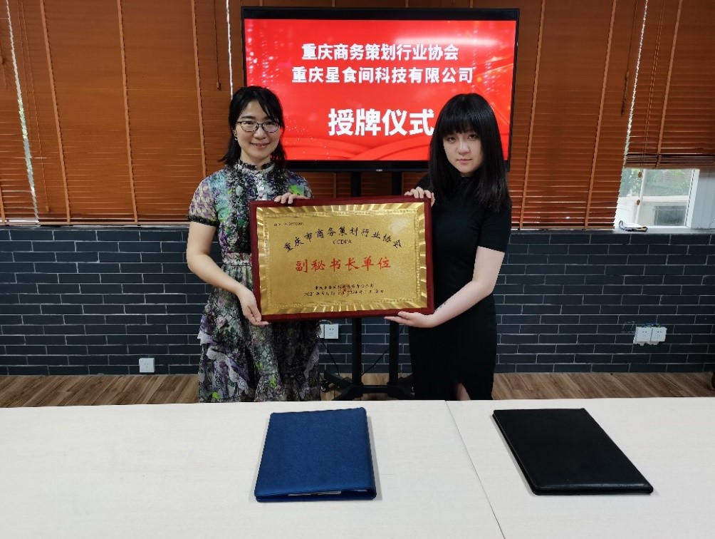 图2.学院授予重庆星食间科技有限公司重庆市商务策划行业协会“副秘书长单位”