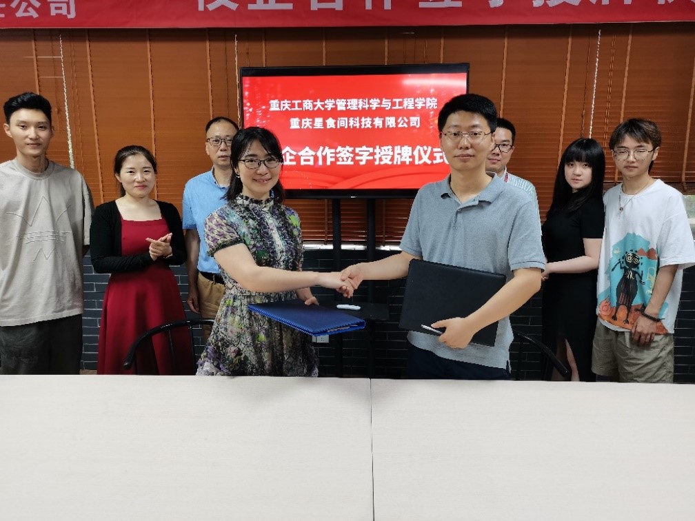 为努力推进校企合作,深化产教融合,2021年7月1日,我院与重庆星食间科技有限公司举行了校企合作签约暨授牌仪式。学院分党委书记邓德敏、副院长陈久梅、教学秘书胡恋,重庆星食间科技有限公司总经理何庆功、运营总监周付勇、刘政、策划总监杨澜等参加了本次签约暨授牌仪式。