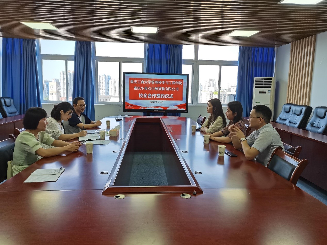 7月13日,重庆小雨点小额贷款有限公司(下称“小雨点有限公司”)人力资源总监张怡、招聘经理邱斌等一行三人来我院洽谈推进校企合作事宜。学院副院长陈久梅、信息管理系主任涂智寿教授、教师代表唐敏教授、信息管理系副主任梅远飞老师参加了洽谈。