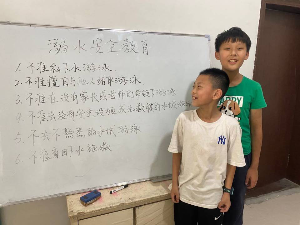 图为志愿者对小朋友进行溺水安全教育 易兴容 供图