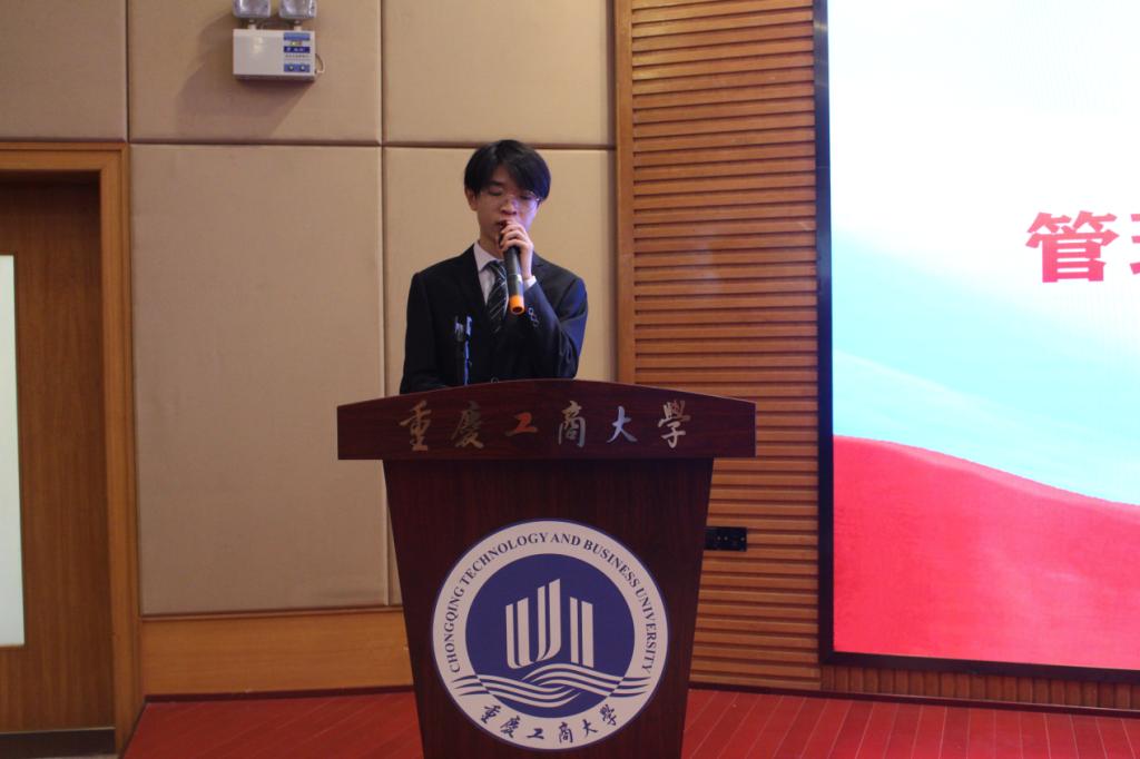 学院分党委副书记陈春洁作题为《团结同学,引领同学,为迈向新时代高水平新商科复合型人才新台阶而努力奋斗》的致辞,他肯定了学院学生会过去一年的工作成果,同时向新一届学生会提出了三点建议和要求:一选举出的委员会委员要起先锋作用,引领学生加强学习,坚持推进“12345”人才培养模式,从传统教学、学堂活动、学科竞赛、产业实习等方面全面培养交叉复合型人才;二要学与思结合,做切实的工作,发挥桥梁作用、表率作用、助手作用和凝聚作用;三要注重作风,谦虚团结,求知好学。