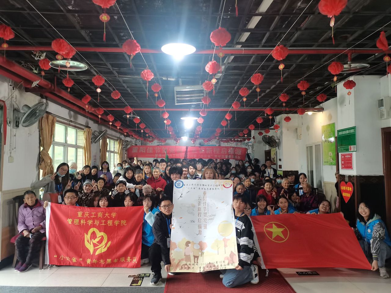 遇及深秋,吾心似火。恰逢重阳佳节之际,为弘扬尊老、爱老、敬老、助老的中华民族传统美德,倡导“奉献、友爱、互助、进步”的志愿精神,践行十九大之社会主义核心价值观,ok138cn太阳集团,太阳集团tyc9728,44118太阳成城集团“小云雀”青年志愿者服务队于10月16日前往重庆市南岸区南山街道泉山村麻柳湾33号福源养老院,开展以“重阳佳节贺党诞,云雀新程启福源”为主题的敬老活动。