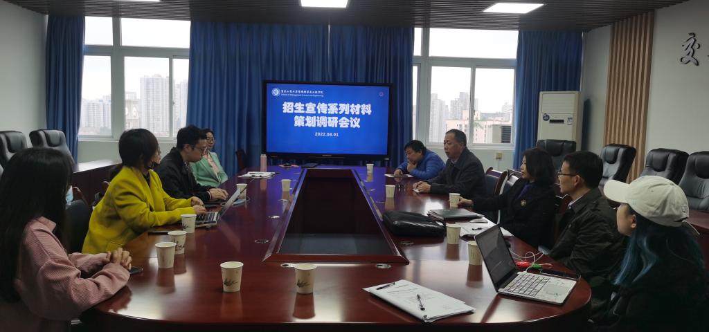 2022年4月1日下午,在启智楼80709会议室举办2022年招生宣传系列材料策划调研会,学院书记邓德敏、院长黄钟仪、教学副院长陈久梅,大数据管理与应用、工程管理、物流管理、电子商务各专业的系主任和云招考教育科技公司策划人员参加此次会议。
