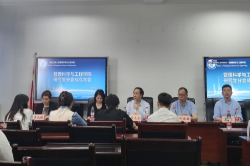 邓龙奎代表研究生院致辞,对管工学院研分会的成立表示热烈祝贺,并提出殷切希望。他希望研分会同学们深入学习习近平总书记的七一重要讲话,牢记青年使命,勇担时代责任,团结青年、凝聚青年,为青年学生成长做出研分会的贡献。