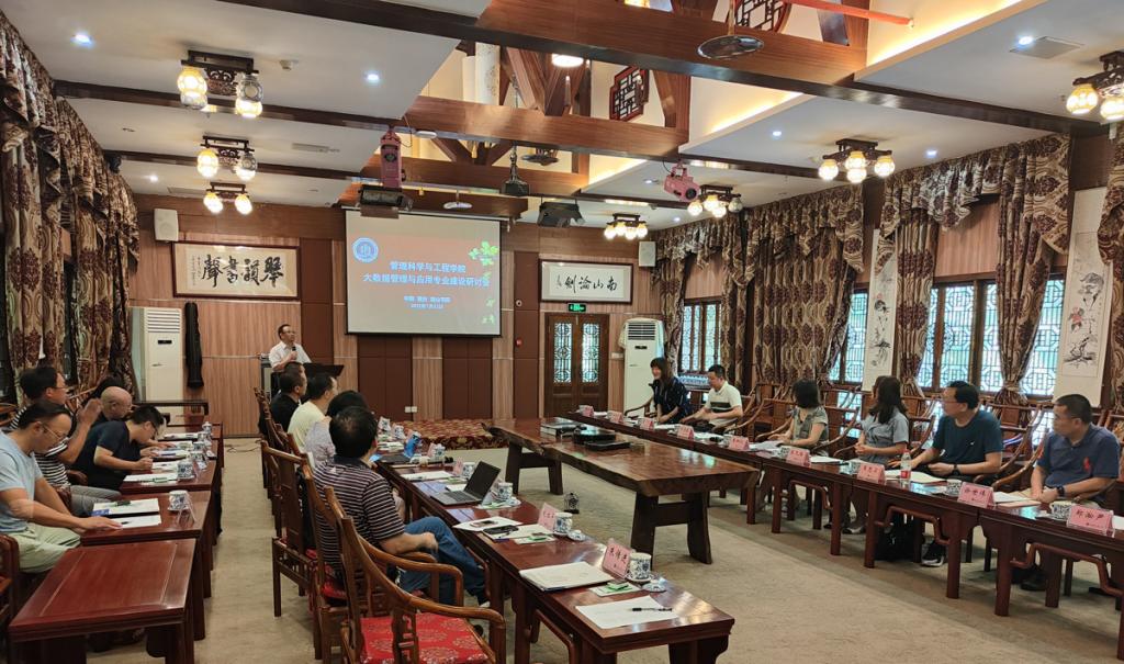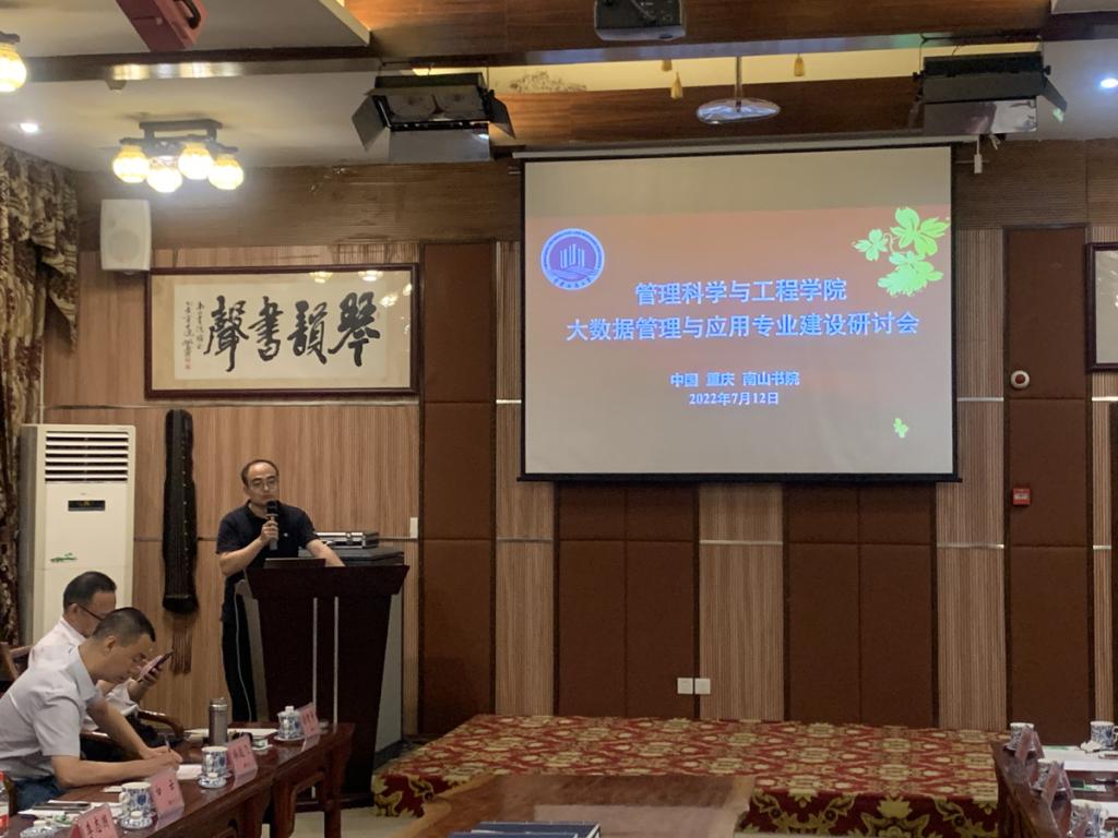 为加快推动大数据管理与应用专业课程建设、师资队伍建设以及实验平台建设,7月12日下午,ok138cn太阳集团大数据管理与应用专业建设研讨会在南山书院问松报告厅成功举办。ok138cn太阳集团邓德敏书记、黄钟仪院长、詹川副院长、陈久梅副院长、西安工程大学大数据管理与应用专业负责人李艳主任、百分点科技集团数据科学家杜晓梦博士以及信息管理系全体教师参加了此次会议。会议由信息管理系(以下简称“信管系”)涂智寿教授主持。