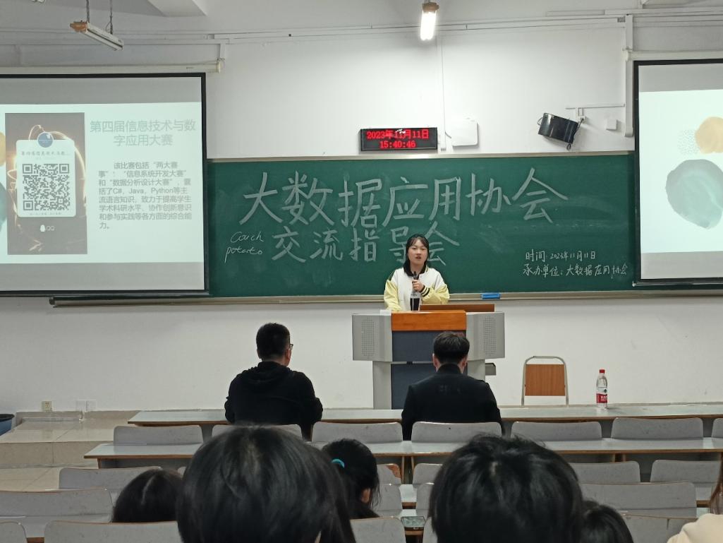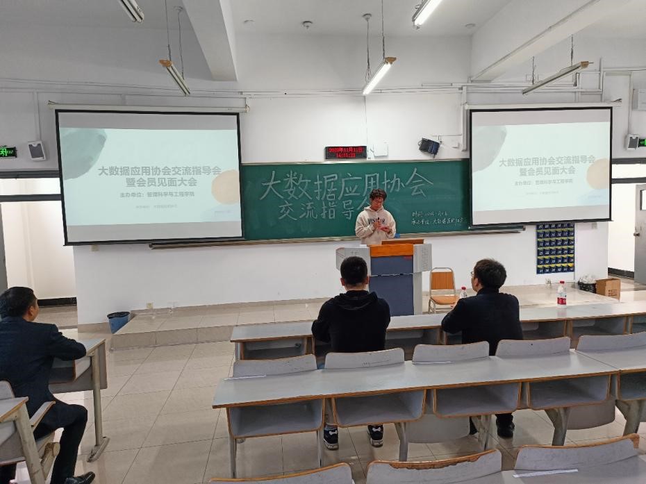 大会由协会副会长敖子壹主持,敖子壹向大家介绍了参加本次交流指导会的各位老师,并向老师及同学介绍了大数据应用协会的主要职能。