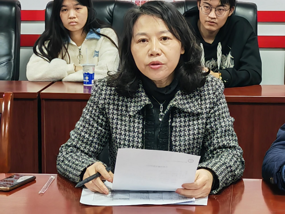 副院长陈久梅介绍了中国高校大学生竞赛综合排名、2023全国普通高校大学生竞赛排行榜、2023年重庆市大学生竞赛项目、太阳集团tyc9728学科竞赛定级名单(2023年),以及我院自成立以来学科竞赛取得奖项的具体情况。