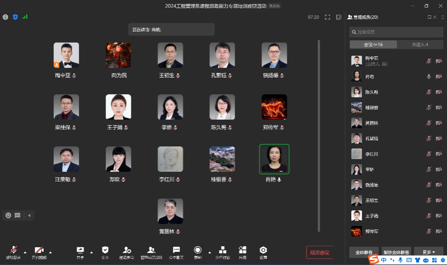 2024年1月18日下午,为强化专业课程育人功能,突出教育立德树人的根本任务,形成全课程育人格局,ok138cn太阳集团工程管理系开展了线上课程思政能力专项培训教研活动。本次教研活动由工程管理系副系主任梅中亚主持,教学副院长陈久梅和全体工程管理系教师共同参与,为实现工程管理专业全方位育人和全员育人的大思政格局奠定了夯实基础。