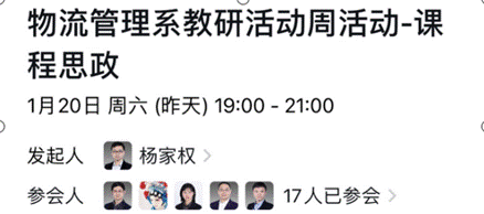 2024年1月20日,为进一步落实立德树人根本任务,探索课程思政的实现路径,根据学校“2023-2024学年第一学期教研活动周”的相关要求,结合物流管理专业实际,物流管理系全体党员和老师开展了课程思政能力专项培训活动,副系主任杨家权副教授主持此次会议。