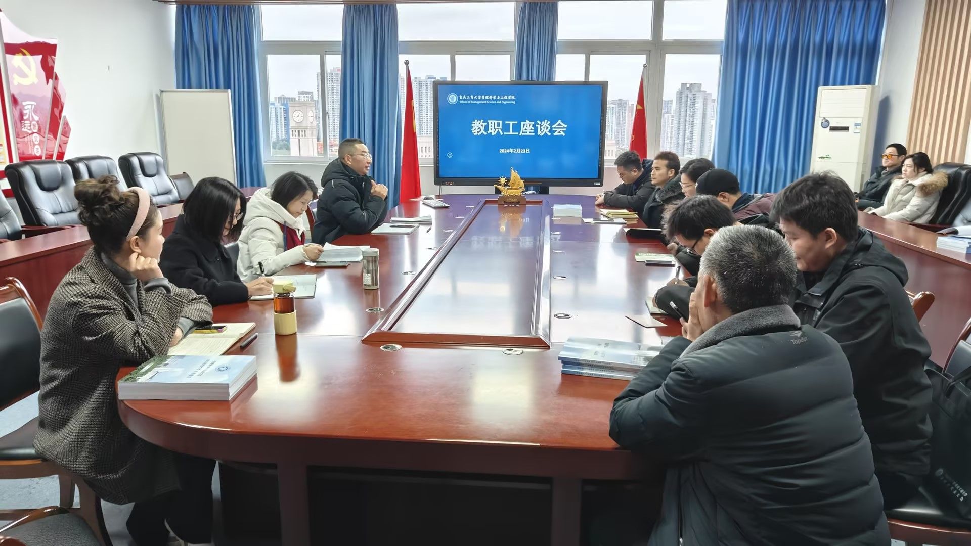 2024年2月23日下午,ok138cn太阳集团在80709会议室召开教职工座谈会,学院领导班子,系主任,系副主任,科级干部,教代会委员,工会委员参加了座谈会,会议由院长黄钟仪主持。