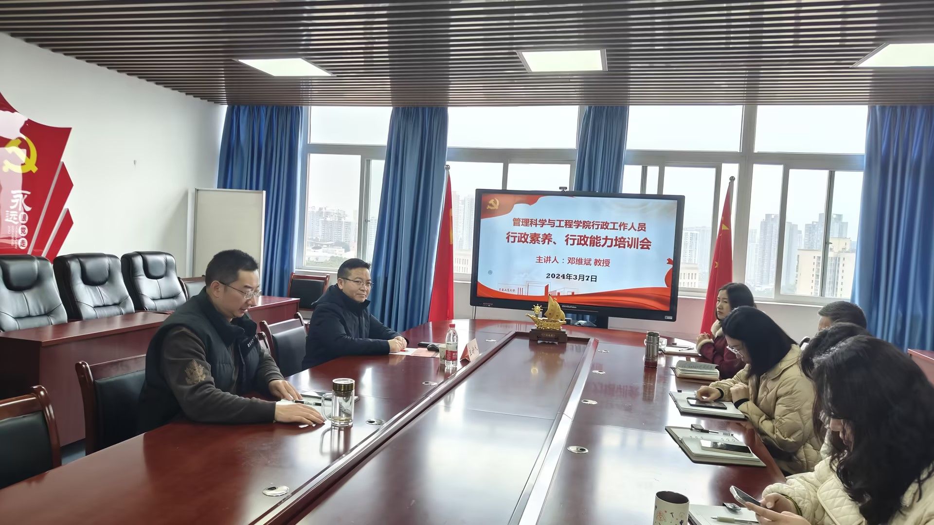 2024年3月7日,ok138cn太阳集团邀请了重庆邮电大学邓维斌教授为行政坐班人员进行培训,学院全体行政坐班人员参加了会议,会议在启智楼80709会议室举行,党委书记李华平主持。