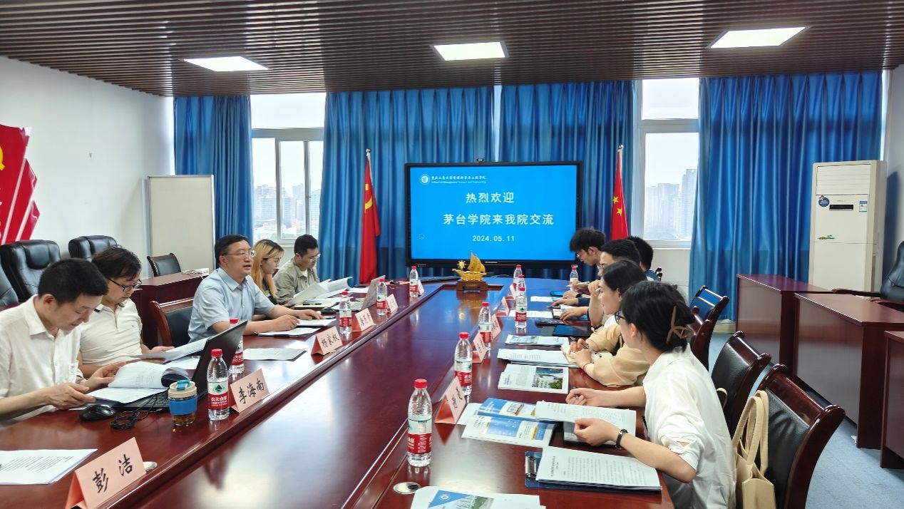 5月11日上午,茅台学院工商管理系党总支副书记吴鹏西、副主任马青一行来院调研交流,学院党委书记唐亮贵、物流系副主任杨家权、电商系副主任文悦,及骨干教师李海南、王政参加会议,会议由唐亮贵主持。