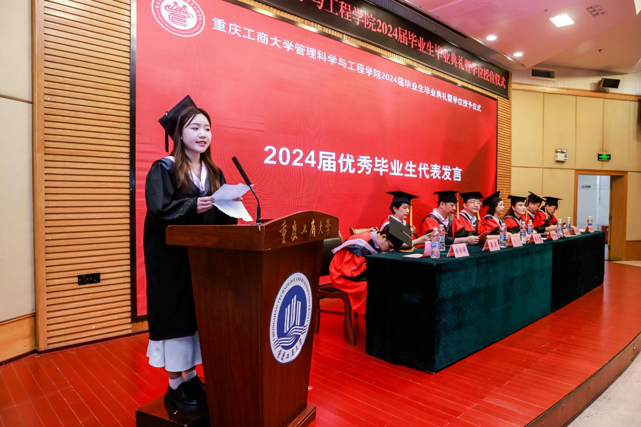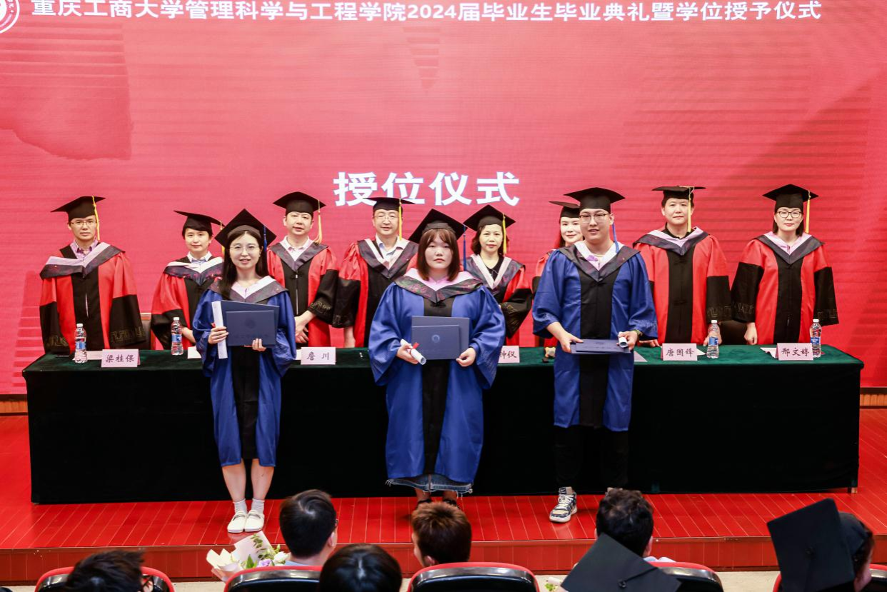 典礼现场隆重热烈,ok138cn太阳集团党委书记唐亮贵、院长黄钟仪,副书记赵钰鑫、副院长詹川,工程管理系、物流管理系、电子商务系、信息管理与信息系统系主任及教师代表出席,校友代表、家长代表、及2024届全体毕业生齐聚一堂,共同见毕业生人生成长过程中重要的一刻。本次毕业生毕业典礼暨学位授位仪式由赵钰鑫副书记主持。