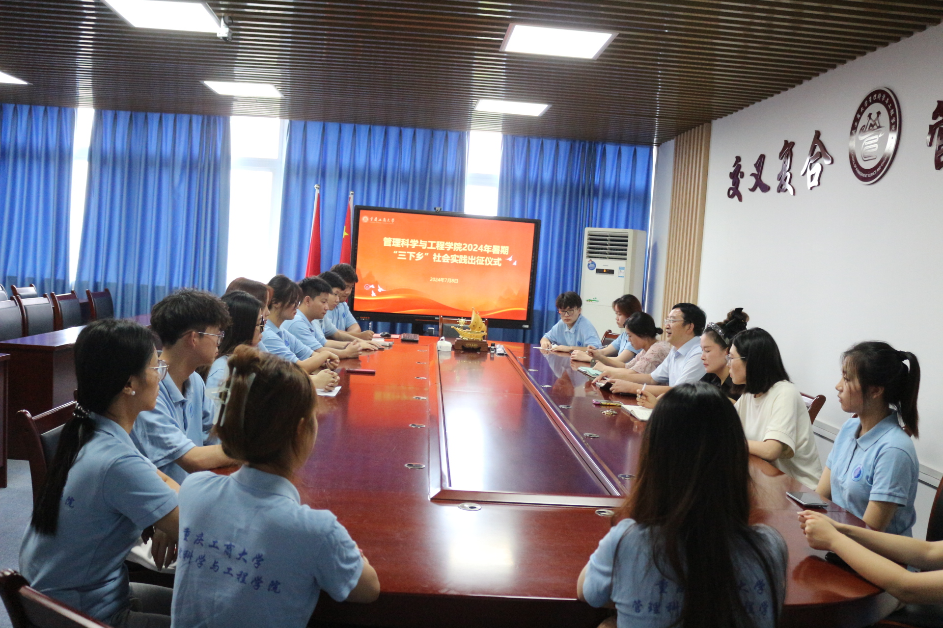7月8日上午,ok138cn太阳集团2024暑期“三下乡”社会实践活动出征仪式在启智楼709会议室举行。学院党委书记唐亮贵、院长黄钟仪、党委副书记赵钰鑫及实践团师生参加了本次出征仪式。仪式由分团委书记古纯玉主持。