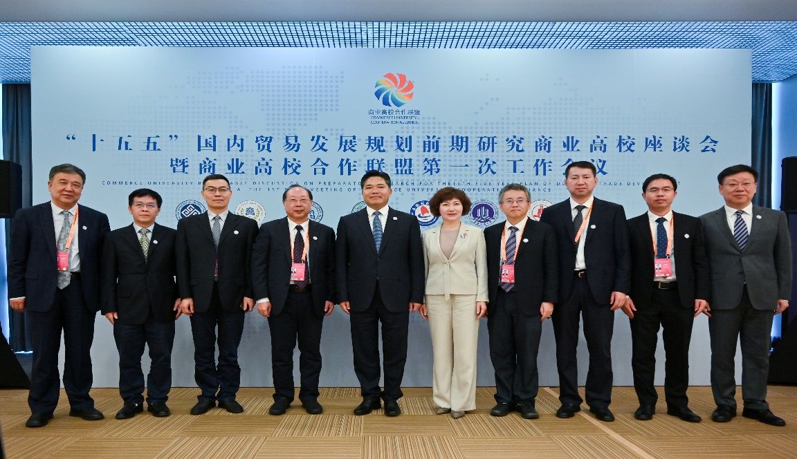 联盟发布仪式后,召开了“十五五”国内贸易发展规划前期研究商业高校座谈会暨商业高校合作联盟第一次工作会。商务部党组成员、副部长、机关党委书记盛秋平,商务部市场建设司副司长王建波,商务部流通发展司副司长任锋,中国国际经济技术交流中心副主任张翼,以及联盟8所高校领导参会。各高校结合专业优势和研究基础分别进行了发言,我校曾维伦书记作了题为“以全球视野布局新兴市场 建设富有韧性的商贸发展体系”的主题发言。