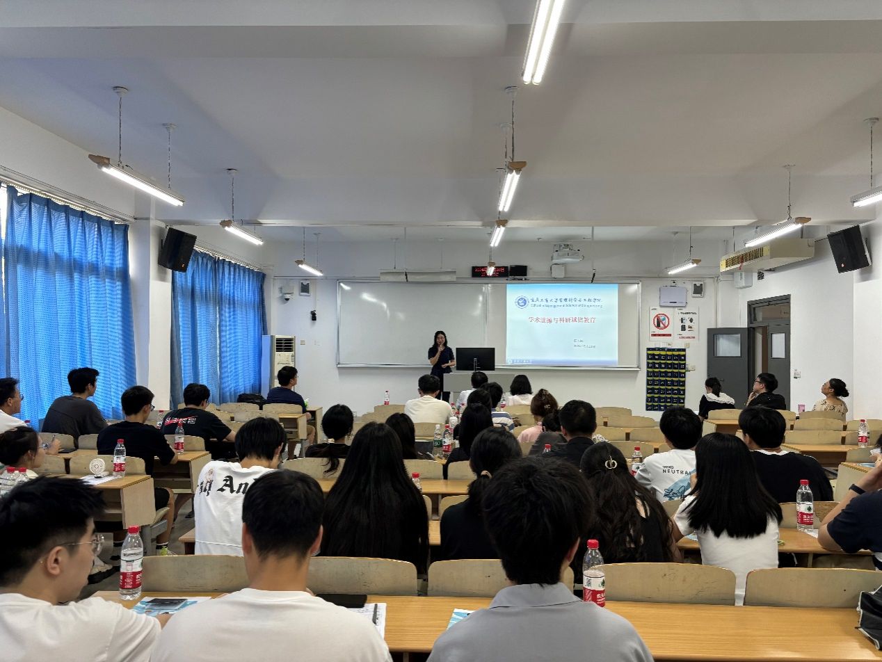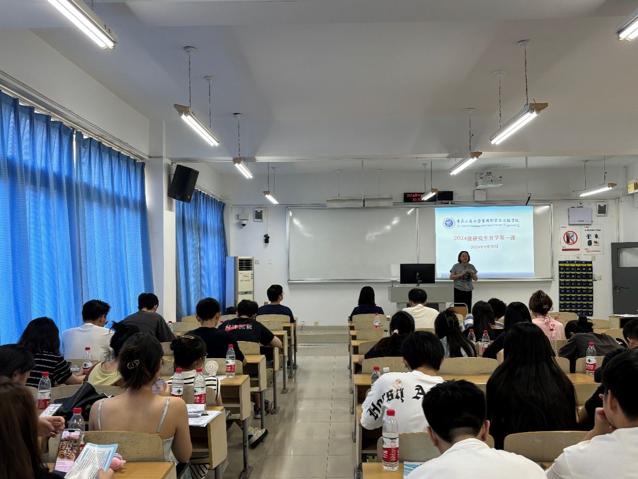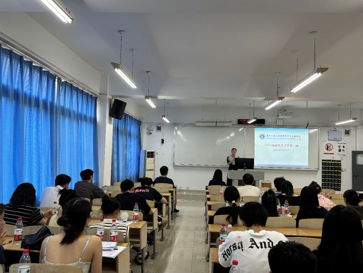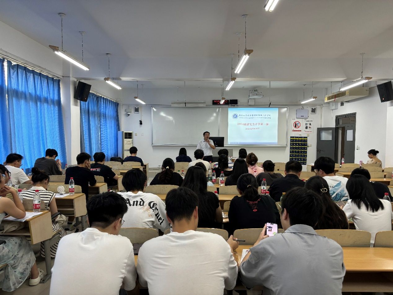 黄钟仪院长在开学第一课上发表了热情洋溢的致辞。她首先向全体2024级研究生同学表示热烈欢迎。然后,黄院长指出学院拥有一支实力雄厚的师资队伍。并特别指出,学院的老师们不仅科研能力出众,更具备着不懈拼搏的精神与耐心细致的指导态度。其次,黄院长深刻阐述了“交叉复合,管工融通”这一院训的核心价值,并强调,作为学子,我们应当积极响应时代召唤,致力于将管理智慧与工程技术深度融合,为我国的高质量发展贡献出坚实的管理力量与创新的解决方案。最后,黄院长还提到研究生阶段与本科生阶段的不同,研究生需要做到自我驱动,培养强大的内在动力,做到“站高望远谋开局,脚踏实地干工作”;转变学习模式,从知识性学习向研究性学习和创新性学习转变;学习要贴合实际需求,在科研道路上,始终保持对现实问题的敏锐洞察。