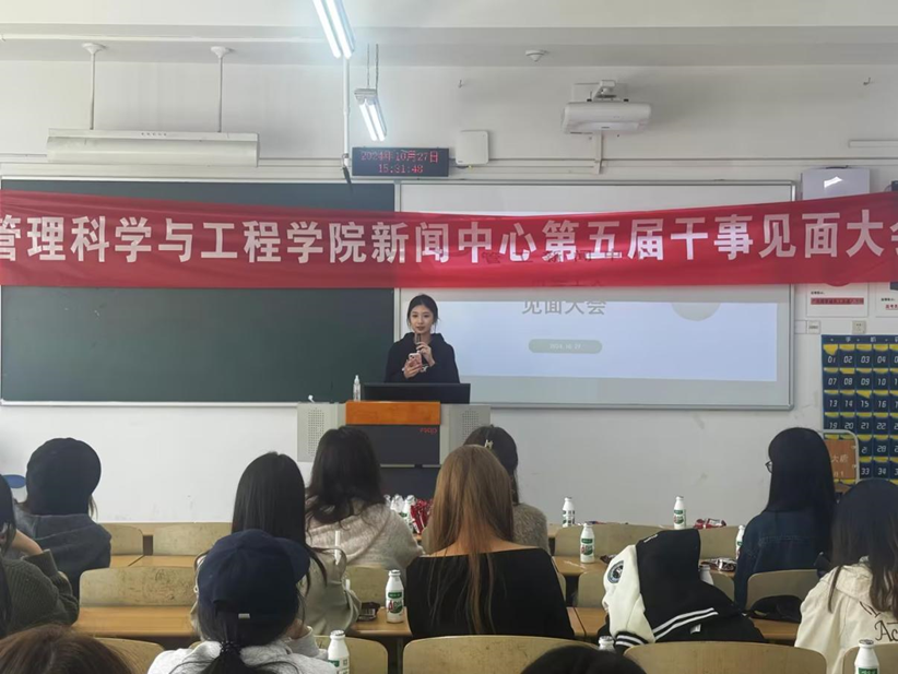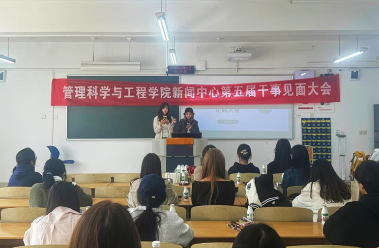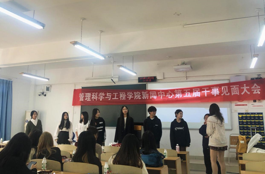 议程第一项由新闻中心主任张婉怡、祖凯悦致辞,欢迎新同学加入管工新闻中心大家庭。