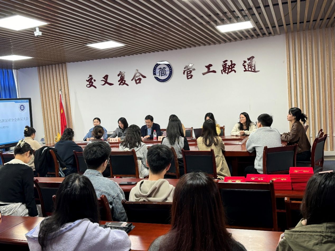 会议伊始,唐亮贵书记代表学院向大会的召开致以热烈的祝贺,并亲切问候了与会师生。他充分肯定了前三届研分会的工作成果,并对新一届成员提出了殷切的期望。唐书记强调,研分会成员应全心全意服务同学,提升管理服务能力,为成为未来的创新性管理与服务人才打下坚实基础。他倡导成员们要平衡好研分会工作与学习的关系,在研分会工作中实现学科专业联动,打造一支团结协作、专业素质过硬的学生团队,并期待第四届研分会能再创辉煌。