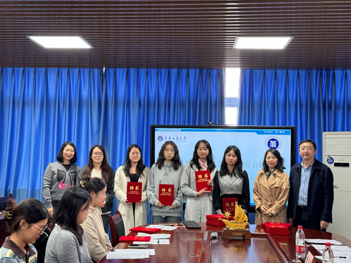 陈久梅副院长宣读了第四届研分会成员名单,唐亮贵书记、黄钟仪院长和陈久梅副院长颁发聘书并合影留念。
