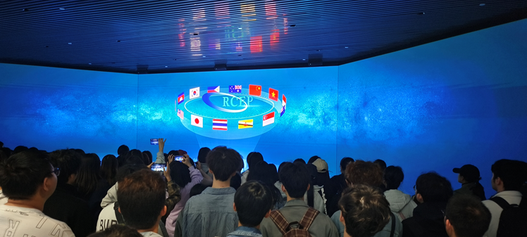 上午9点,师生一行首先抵达江津综合保税区。在这里,讲解员详细介绍了重庆枢纽港产业园国际物流枢纽规划的最新进展,并播放了一系列相关视频,帮助学生们直观地了解保税区的功能布局及其在全球供应链中的重要地位。随后,大家参观了保税区内展示的多种进口商品,从电子产品到汽车配件,琳琅满目的展品让学生们深切感受到了国际贸易的繁荣景象。
