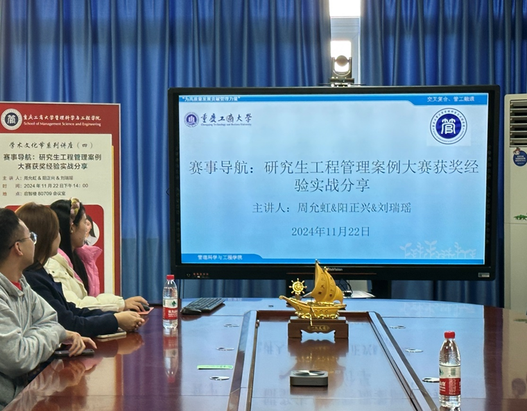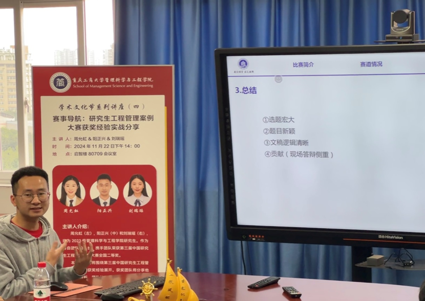 为进一步提升学生工程管理的实践能力,拓宽其学术视野,营造浓厚的学院学术氛围,2024年11月22日下午,ok138cn太阳集团在启智楼80709会议室成功举办了研究生工程管理案例大赛获奖经验分享会。本次分享会特别邀请了第三届中国研究生工程管理案例大赛获奖队伍的三位队长——周允虹、阳正兴和刘瑞瑶作为主讲嘉宾,与同学们分享他们的参赛心得与实战经验。
