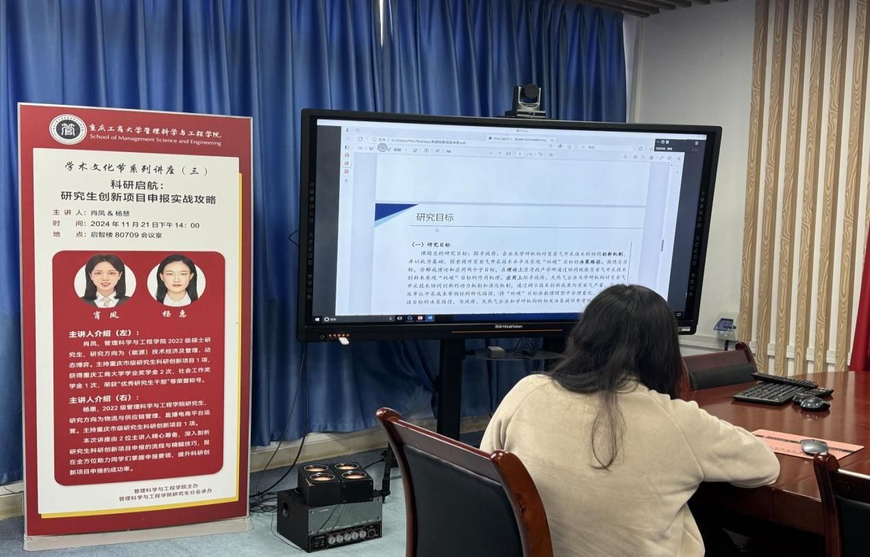 2024年11月21日,为助力本学院研究生掌握创新项目申报的要领,提升科研创新项目申报成功率,ok138cn太阳集团开展研究生创新项目申报实战分享会,会议于启智楼80709室圆满举行。主讲人为肖凤同学和杨慧同学,她们分别介绍了项目申报过程中的注意事项和申报书书写要点,由ok138cn太阳集团24级全体学硕同学参会。