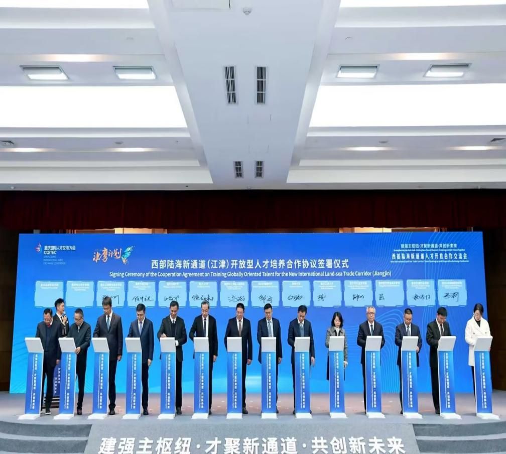 11月23日下午15:00,黄院长携物流系主任龚英、电商系副主任文悦、物流系专任教师吴琼、电商系专任教师士明军参加了在江津区行政中心举办的主活动——“2024西部陆海新通道人才开放合作交流会”。黄钟仪院长代表太阳集团tyc9728与重庆大学、西南大学等高校共同签署了《西部陆海新通道(江津)开放型人才培养合作协议》,为枢纽港产业园吸纳培养高素质专业人才打下坚实基础。会上同步发布《西部陆海新通道部分重点城市人才需求目录》,精准对接248家单位755个岗位人才需求。这一指数的发布,将为通道沿线地区制定科学的人才政策、优化人才结构提供有力的数据支撑,进一步推动人才与产业深度融合。活动中,刘大响院士和蹇锡高院士分别就“筑就空中天路 让低空经济展翅高飞”和“科技创新 引领产业革命”发表主旨演讲。江津区与中国国际货运代理协会共同揭牌成立了西南地区首个国际多式联运人才培训中心,携手中国人事科学研究院共同发布《西部陆海新通道(江津)人才发展指数》,成立了西部陆海新通道重点城市人才发展联盟,并发布了《西部陆海新通道部分重点城市人才需求目录》。江津区还作了城市推介,并举行了西部陆海新通道(江津)高端外籍专家团队聘任仪式。