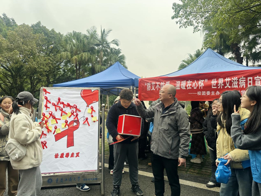 现场活动内容丰富,形式多样,包括抽奖环节、互动小游戏以及转发宣传活动,现场还设置了防艾知识展板、宣传海报和留言板。同学们纷纷驻足观看展板内容,了解防艾知识,并在留言板上留言承诺积极参与防艾行动,以实际行动支持防艾工作,共同营造关爱、支持、不歧视的校园环境。