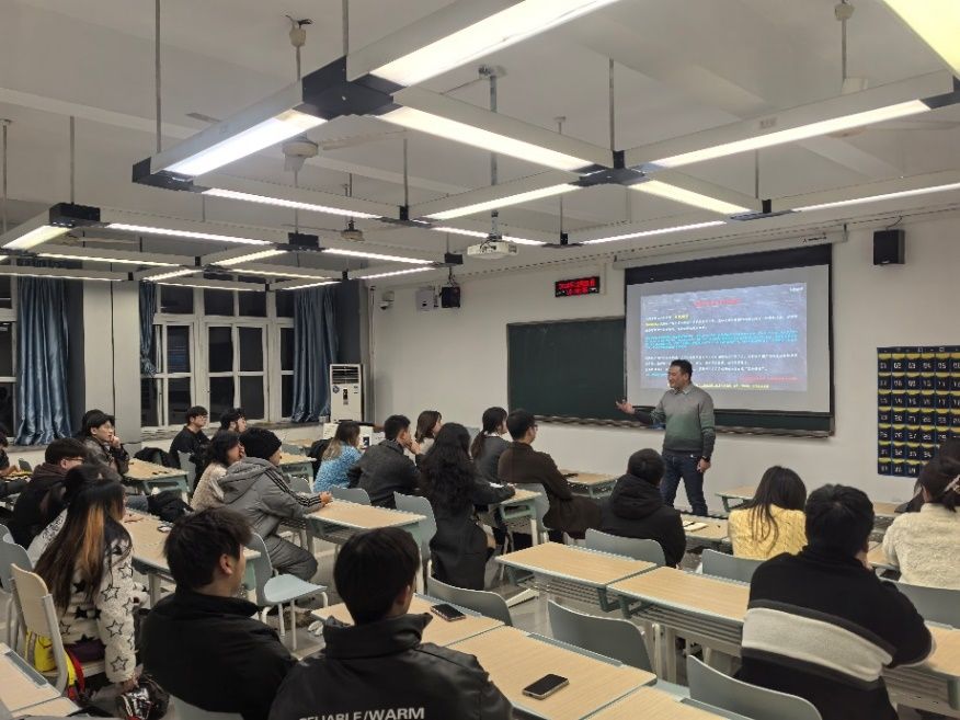 王自鹏总监结合博弈论中的“囚徒困境”和“纳什均衡”等经典模型,通过华为在国际竞争中的博弈策略及健力宝的成长与变革等案例,深刻阐释了企业在竞争、合作与战略选择中的决策逻辑。他还结合物流行业实际,剖析了博弈思维如何在团队协作和企业运营中发挥作用,深入浅出的讲解让学生们对理论的实际应用有了更直观的理解。