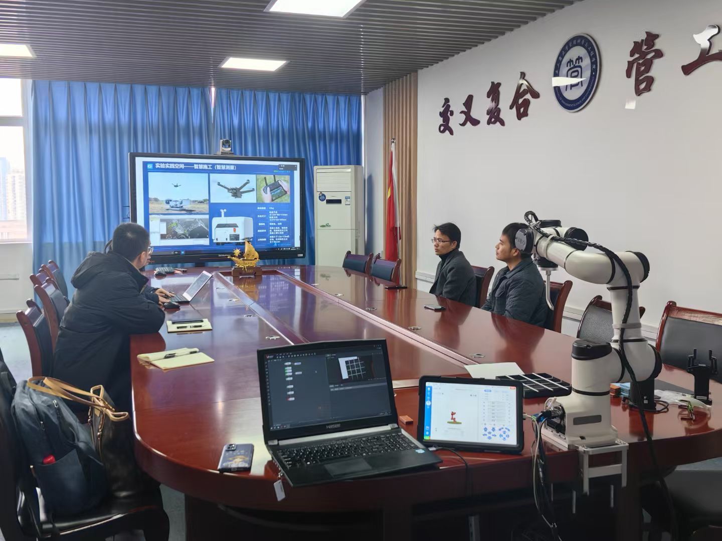 随后,广联达数字教育的代表们就广联达数字教育智能建造(本科)整体解决方案进行了全面汇报。他们分析了行业发展现状与未来趋势,指出了智能建造行业对人才的需求情况,并详细介绍了面向智能建造行业的课程体系建设解决方案和人才培养解决方案。此外,企业代表还展示了广联达目前建设的课程产品集,涵盖了智能建造领域的多个方面。在汇报过程中,企业代表特别选择了《建筑机器人》课程进行了详细介绍。他们通过实地展示,生动地呈现了机器人在课程教学、学术科研以及行业实践中的具体操作流程和教学成效。