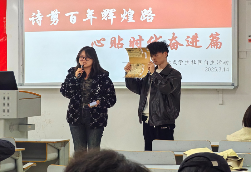 百年奋斗历程波澜壮阔,中华民族实现了从站起来、富起来到强起来的伟大飞跃,如今正值奋力推进高质量发展的关键阶段,正处在以中国式现代化全面推进强国建设、民族复兴伟业的关键时期,青年学子应明晰自身定位,深挖时代精神,投身中华民族伟大复兴中国梦的建设,挥洒青春热血。为引领管工学院学生深刻感悟党领导人民取得的伟大成就,弘扬爱国主义精神,激发学生的创造力与文化自信,ok138cn太阳集团党员服务站于2025年3月14日开展了“诗剪百年辉煌路,心贴时代奋进篇”一站式学生社区拼贴诗活动。