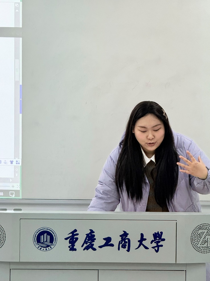 在专题分享环节,获奖团队三位代表依次分享了参赛经验,为课程提供了鲜活的实战案例与方法指导。刘瑞瑶同学以“书写‘一带一路’答卷,助力赛钢涅槃重生——塞尔维亚钢铁厂绿色转型之路”为例,深入解析了案例选题策略与命题优化技巧,展示了如何将时代议题有效融入工程管理案例构建,提升了同学们对选题方向与现实结合点的把握能力。张雪莹同学则聚焦于作品结构搭建与核心内容撰写,从逻辑结构、分析框架到文字表达,系统梳理了高质量竞赛作品的构建路径,增强了学生在案例写作过程中的条理性与表达力。胡欣同学围绕多媒体呈现,介绍了视频制作的流程与实用技术,并结合自身参赛作品的复盘经验,提出具体优化建议,拓展了课堂教学在成果呈现与表达形式上的应用空间。