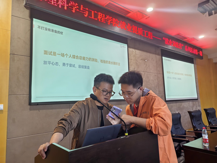 随后,李世强经理凭借丰富的职场经验和专业知识,围绕简历制作和面试技巧展开详细讲解。在简历制作方面,他结合实际案例,深入剖析了简历的各个板块,从内容筛选到格式排版,从亮点呈现到细节优化,为同学们提供了全面且实用的建议。在面试技巧环节,李世强分享了面试前的准备工作、面试中的应对策略以及面试后的跟进要点,让同学们对面试流程有了更清晰的认识。