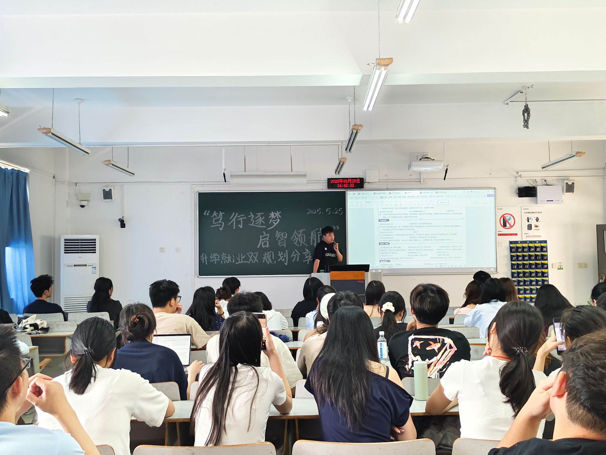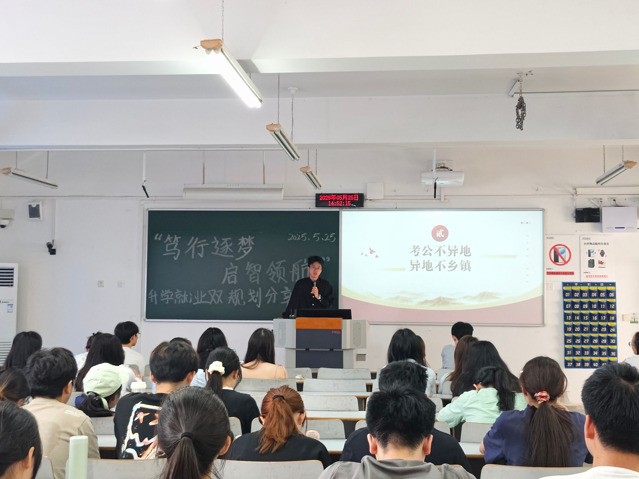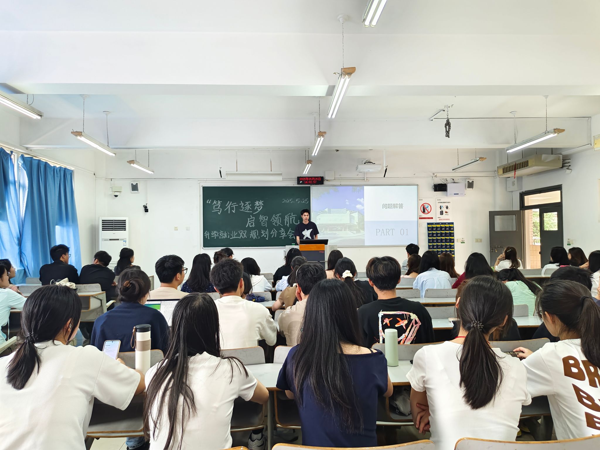 为帮助在校学生明确未来发展方向,科学规划升学与就业路径,由ok138cn太阳集团党员服务站主办的“笃行逐梦,启智领航”升学就业双规划分享会于2025年5月25在启智楼成功举行。活动邀请了四位在考研、考公及就业领域表现优异的学长学姐分享经验,吸引了八十余名学生参与,现场气氛热烈。