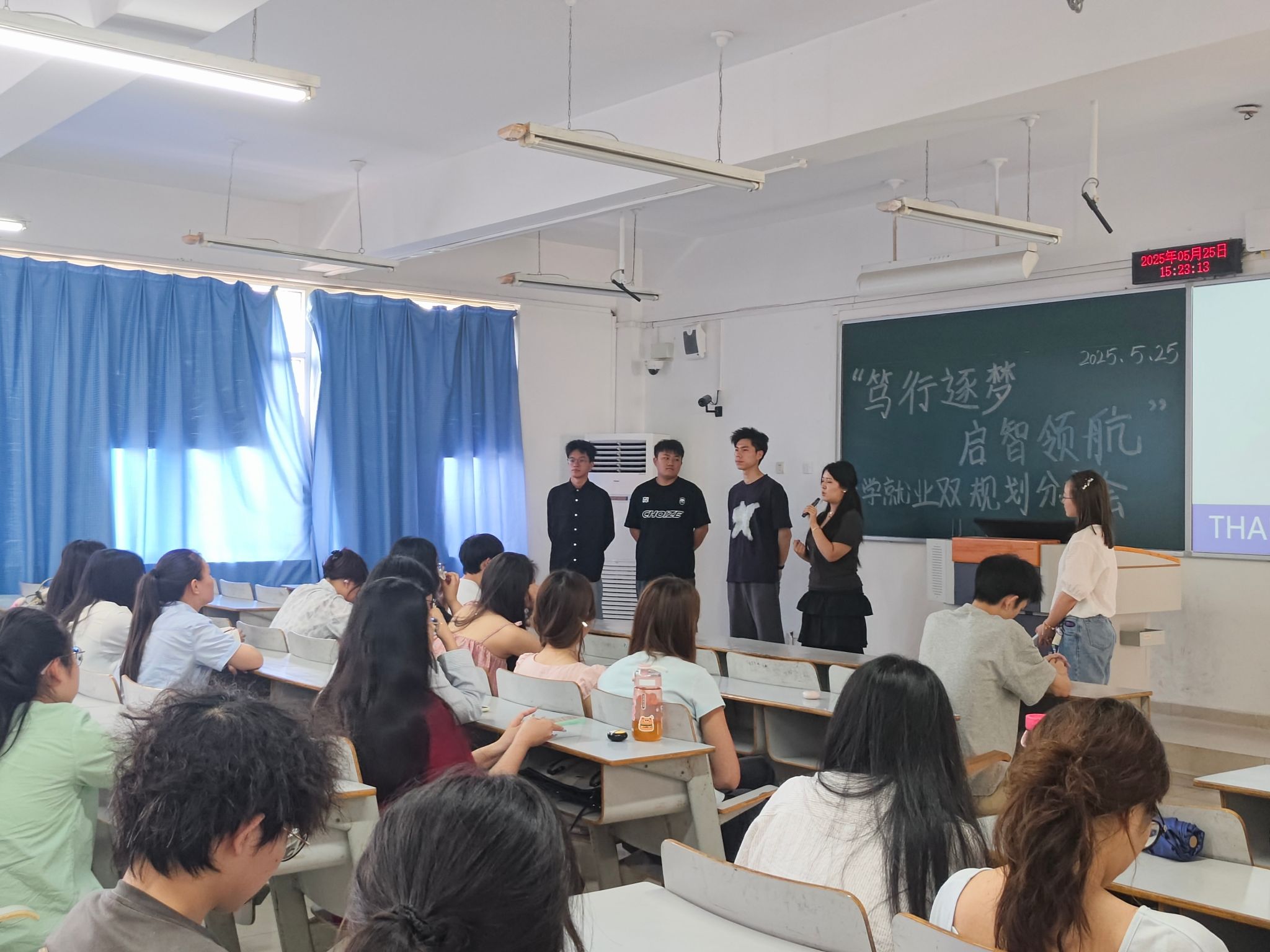 在自由交流环节,同学们围绕“专业与职业匹配”“实习与学业平衡”“备考时间分配”等问题踊跃提问,嘉宾们逐一耐心进行解答。