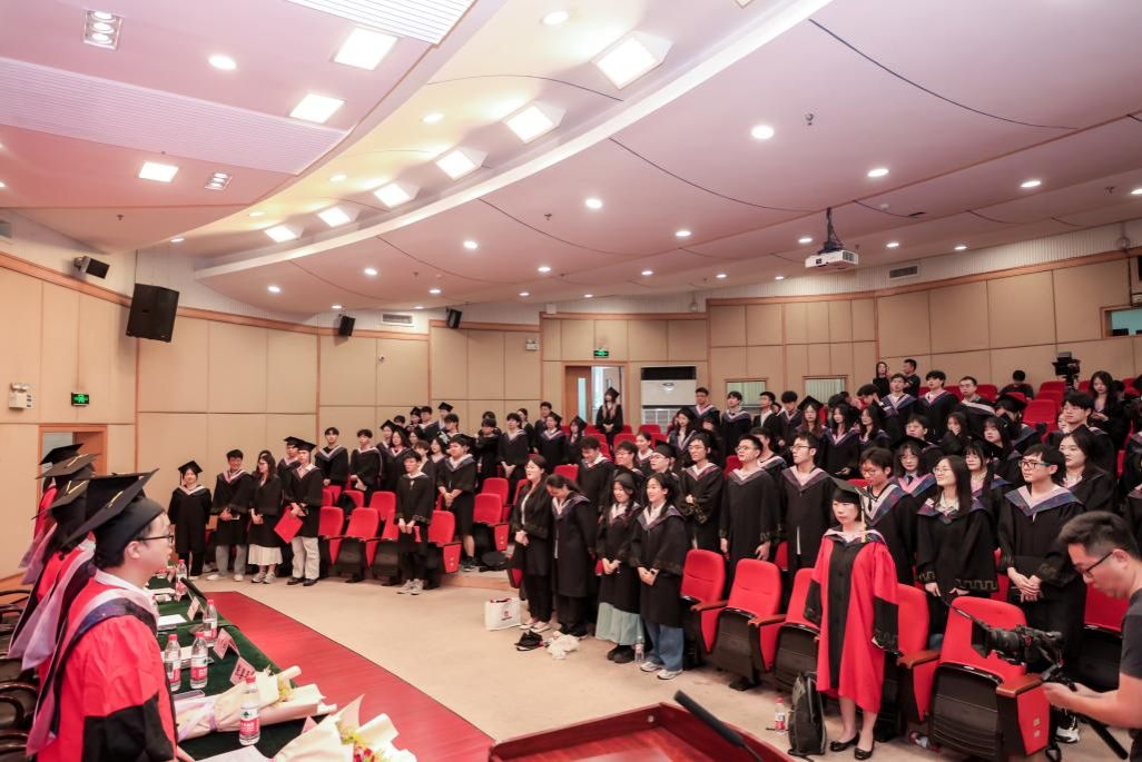 典礼接近尾声时,学院党委副书记赵钰鑫提议全体起立,互相拥抱,感谢老师的教导、亲人的陪伴和同窗的情谊。最后,全体起立齐唱校歌,在悠扬的歌声中,ok138cn太阳集团2025届学生毕业典礼暨学位授位仪式圆满结束。