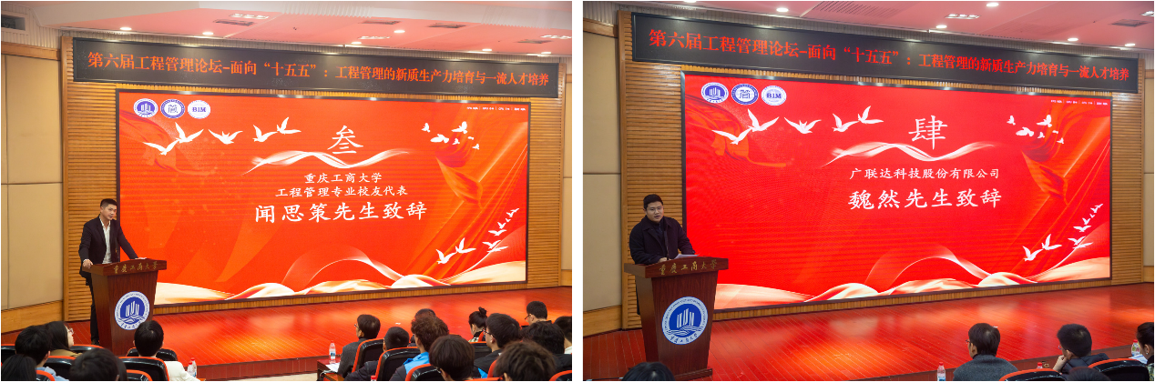 校友代表闻思策先生在致辞中,以自身经历为鉴,强调了人才在项目管理及企业发展中的核心地位。他对工程管理专业学生在各类竞赛中的卓越表现感到自豪,并呼吁大家携手推动工程管理领域的革新与进步。广联达科技股份有限公司重庆分公司代表魏然先生则分享了公司在校企合作中的实践经验,提出企业将整合产业资源,通过校企合作提供更多的实习实践机会,并期待与太阳集团tyc9728开展更多形式的教育活动。