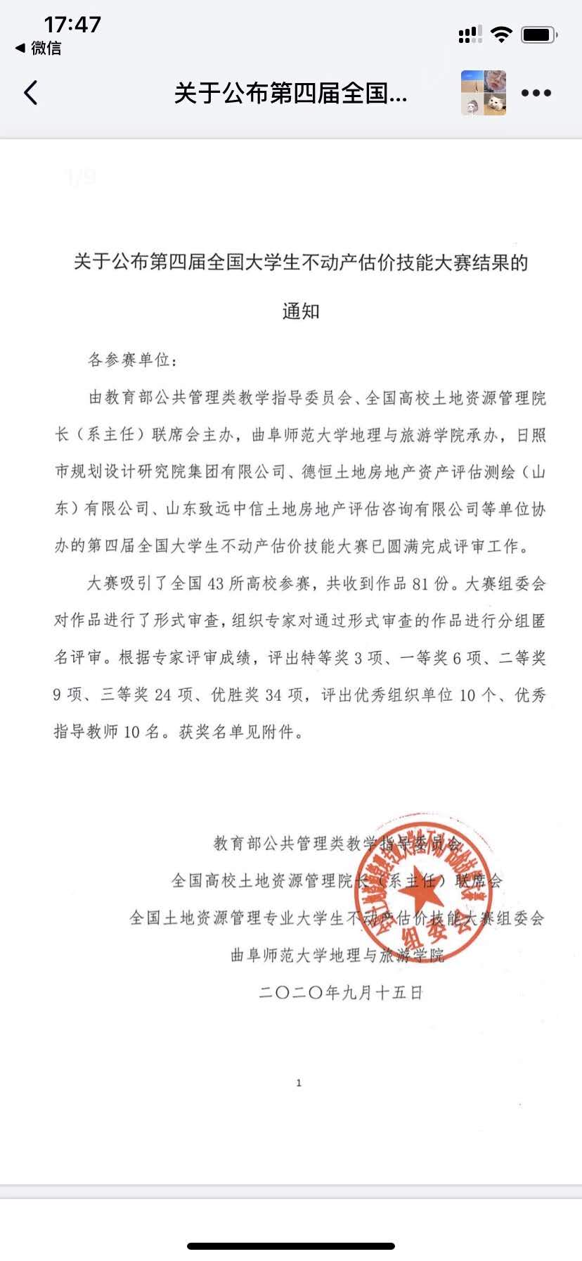 全国大学生不动产估价技能大赛是由教育部公共管理类教学指导委员会、全国高校土地资源管理院长(系主任)联席会主办的、以“新土地管理法背景下的不动产估价实践与创新”为主题,以培养和提升大学生的估价实践技能与实践创新能力为目标,着重考察大学生在不动产估价实务中深入调研待估对象、全面剖析价格影响因素、严谨设计估价思路、合理选择估价方法、规范撰写估价报告的能力及技能。大赛共吸引了全国43所高校参赛,共收到作品81份。根据专家评审成绩,评出特等奖3项,一等奖6项,二等奖9项,三等奖24项,优胜奖34项。