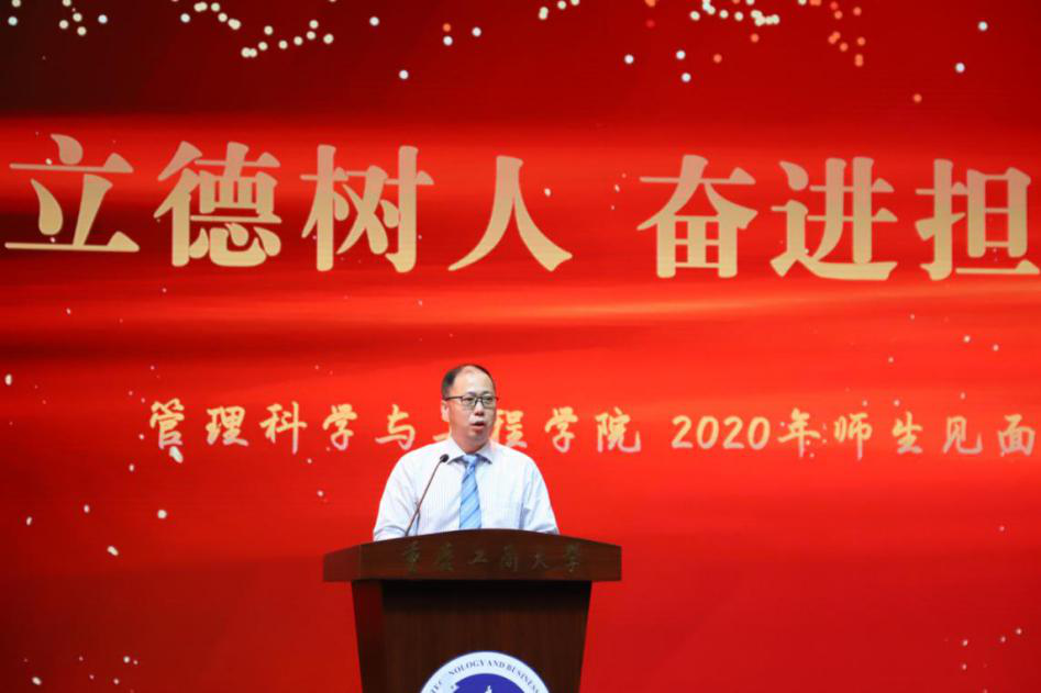 大会在中午12点50全体师生肃然起立,高唱中华人民共和国国歌中正式开始。学院院长黄钟仪教授首先致辞。她指出,第五轮学科评估在即,学院在顺应新时代人才培养大趋势中,由原来分属不同学院的4个专业和5个科研平台融合成立。今天,师生共聚一堂,一方面共庆学院成立,更重要的一方面则是坚持立德树人,师生协力奋进共担当。同时,她希望,一是能够师生齐心将学院建设成为具有完善的现代治理体系和能力的、凝聚工商大学经管特色的一流学院,为国家培育具有新时代担当的人才;二是希望教师既能够做出有高度、深度的学术研究,也愿意俯下身来关心同辈、关怀学生,做一个有人性光辉、有温度的教学者;三是希望同学们能够在追求真知、实现自我的过程中沐浴理性之光,在勇于担当中磨练心气、发现自我、发展自我,真正成为中国特色社会主义事业接班人和建设者。