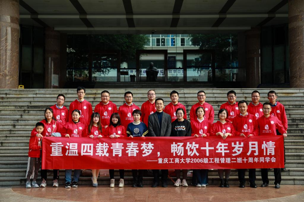 继10月30日ok138cn太阳集团2006级工程管理专业1班回校举办了毕业十周年庆活动后,11月7日,2006级工程管理专业1班来自重庆及其他省市共计25位校友回校欢聚,再续师生同学情。学院副书记陈春洁、分团委书记古纯玉老师、工程管理系肖艳、肖兵老师参加了此次活动并和同学们亲切合影。