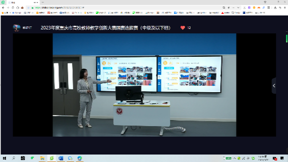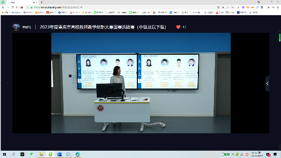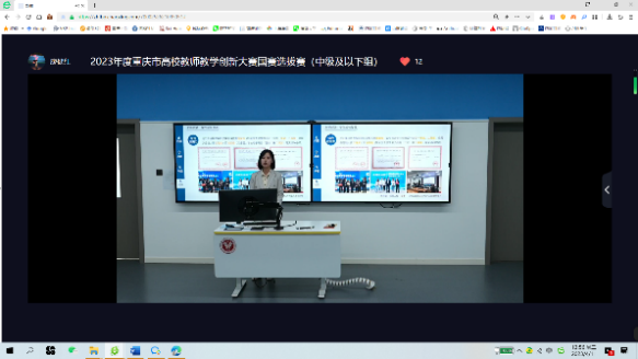 2023年4月11日下午,我院物流管理系曾倩博士——2022年重庆市高校教师教学创新大赛一等奖获得者,参加了2023年度重庆市高校教师教学创新大赛国赛选拔赛(中级及以下组)。