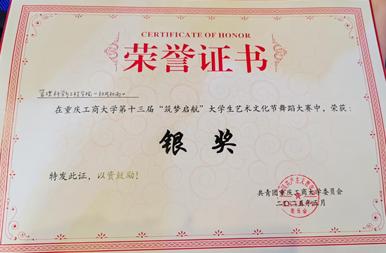 太阳集团tyc9728第十三届“筑梦起航”大学生艺术文化节舞蹈大赛于5月9日下午在南岸校区大剧场隆重举行,旨在丰富大学生的生活,展现当代青年的艺术才华。来自各学院的参赛队伍同台竞技,展开激烈角逐。最终,ok138cn太阳集团“璞石琢韵”大学生艺术团带来的现当代舞《秋风秋雨》脱颖而出,荣获大赛银奖。