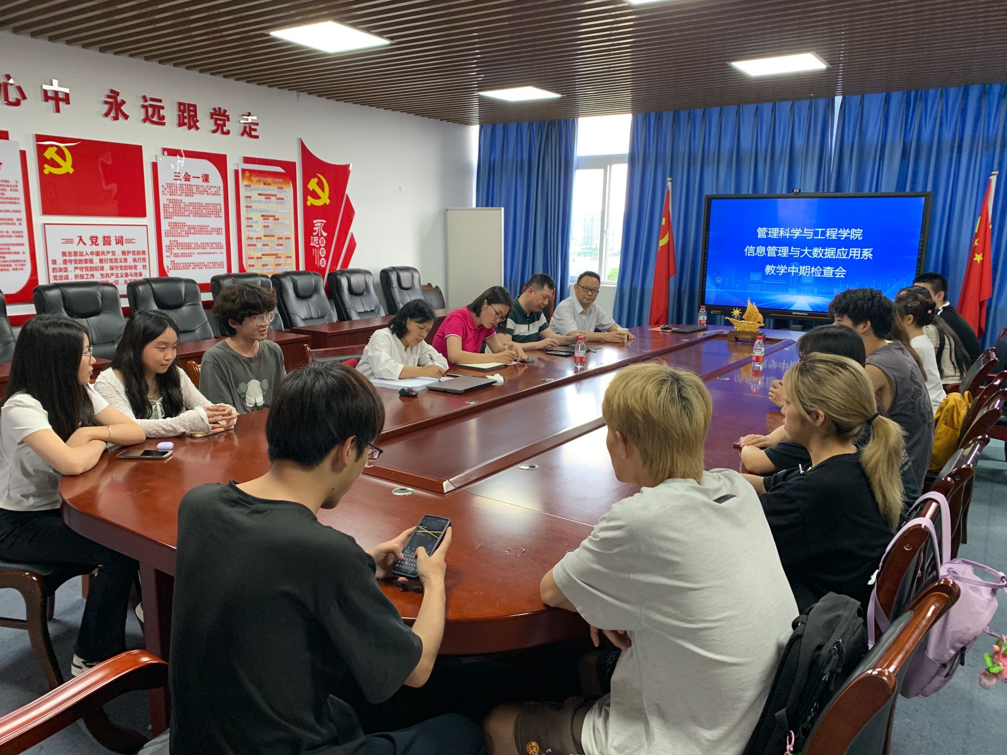 2024年5月20日,ok138cn太阳集团信息管理与大数据应用系在八教709会议室召开教学中期检查会。学院副院长詹川、信息管理与大数据应用系系主任邢文婷、系副主任郑淞尹、专任教师涂智寿、李红霞,辅导员老师游薇、古纯玉,以及各班级学生代表参加了会议。