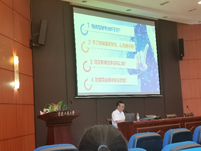 会议伊始,吴琼老师从如何认识,要保持独立的思考等多个方面指导同学们对物流管理专业进行更深刻的认识,令同学们感受到物流管理专业良好的发展前景。其次,吴琼老师通过张骞开辟丝绸之路与重庆“渝新欧”铁路的发展,从古到今向同学们解析了物流管理专业的就业方向,扫清了同学们对专业的困惑。然后,吴琼老师分享了他所带团队的选人标准,他指出成绩优异是必要条件但并非决定性因素,他认为积极、实干、勤奋等的优秀素养同样重要,为同学们点明了现阶段需做出的努力。最后,吴琼老师强调了要有明确的目标、良好的沟通协调能力与学习创新能力,就一定能学好物流管理这门专业。