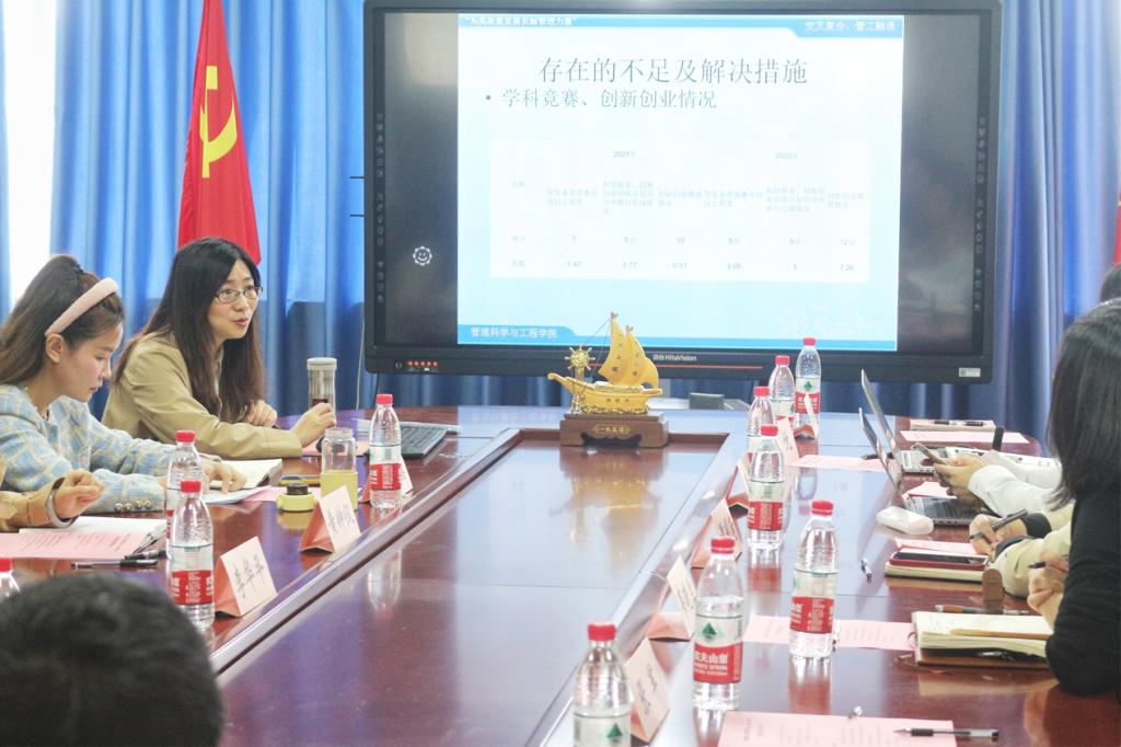 陈久梅副院长从学院本科人才培养定位及范式、本科专业、国际合作、校地企合作、专业实验/实训基地建设等方面通报了近期教学工作情况;她提出了关于本科生发表高水平论文的有关建议,提出了本科生学科竞赛、创新创业能力不足等问题并提出了相应的解决措施。