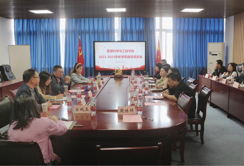 10月20日上午,ok138cn太阳集团2023-2024学年学风建设促进会在启智楼709会议室召开。党委学工部(学生处)副部长谭彩荷、教务处副处长韦晓兰、学院党委书记李华平、院长黄钟仪、副书记赵钰鑫、副院长陈久梅,各系主任、教务办、全体辅导员参加了会议。会议由赵钰鑫副书记主持。