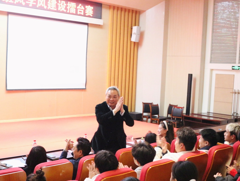 经过初赛选拔,11个班级参加此次擂台赛现场展示。比赛现场气氛热烈,掌声雷动,各个班级全力以赴,精心准备,通过心理情景剧、合唱、朗诵、舞蹈等多种形式展现了班级风采,创新的学习方法、严格的班级纪律规范以及丰富多彩的团队活动,无不彰显着同学们的智慧、创造力和班级凝聚力。党委学生工作部副部长谭彩荷进行了精彩点评,高度肯定了所有参赛班级的优秀表现,以及他们在班风学风建设中取得的显著成绩并鼓励大家继续努力。